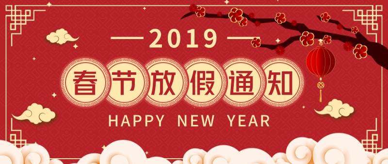 在2019春節(jié)即將來臨之際,根據(jù)《國務(wù)院辦公廳公布2019年放假安排》,結(jié)合公司的實際情況,現(xiàn)就2019年春節(jié)放假安排通知如下: