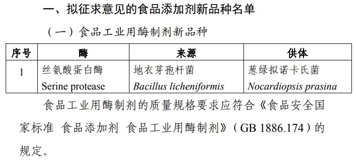 根據(jù)《食品添加劑新品種管理辦法》和《食品添加劑新品種申報與受理規(guī)定》,食品工業(yè)用酶制劑新品種絲氨酸蛋白酶、擴大使用范圍的食品添加劑乳酸鈣和三贊膠的申請,其安全性和工藝必要性已通過專家評審委員會技術(shù)審查(具體情況見附件),現(xiàn)公開征求意見。請于2023年5月22日前將相關(guān)意見反饋至我中心郵箱(zqyj@cfsa.net.cn),逾期將視為無意見。